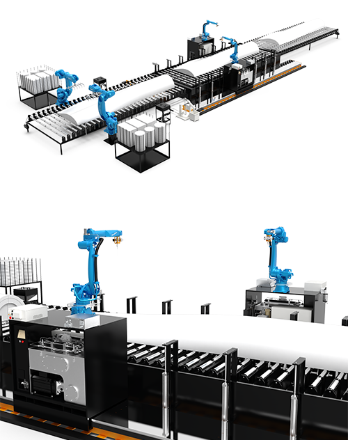 上下料部分:计划上料由厂区行吊完成; 机器臂配合机器视觉承担下料作业, 做到自动化上下料(可选).